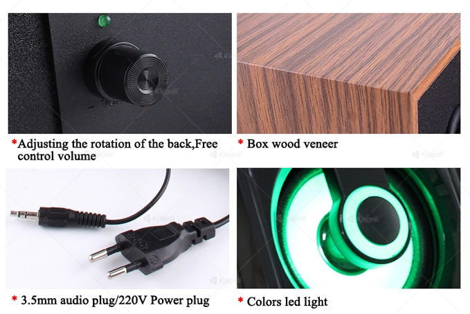Kisonli AC-9001 Multimedia Speaker Quick Details & Specifications Brand Name: Kisonli Model Number: AC-9001 Product name: USB 2.0 wooden computer 2.0 speaker Type: Active, computer speaker Use: Computer, Karaoke Player, Mobile Phone, Portable Audio Player Channels: 2 (2.0) Special Feature: Mini, Portable Place of Origin: Guangdong, China (Mainland) Interface type: USB Rated power: 3W*2 Power Output: 3W*2 Power: USB power 5V or AC 220V; Material: Wooden; Output Power: 3W*2; Impedance: 4Ω Color: Black & Orange Material: Plastic ... show more
